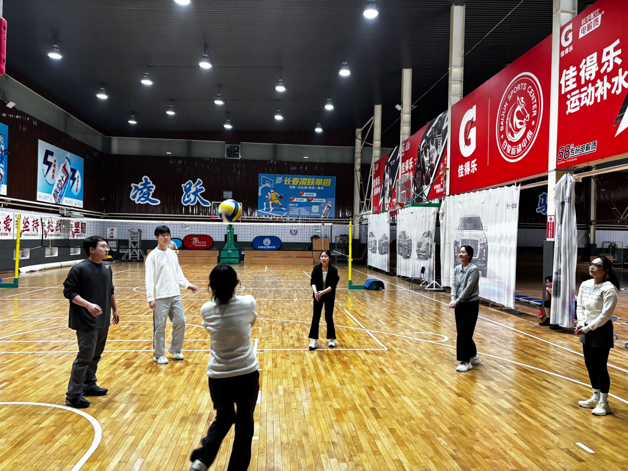 邀请了有经验的博士师兄进行现场教学。师兄从场地、规则讲起,并示范了发球、传球、扣球等基本动作,提醒大家比赛中的安全事项,同学们学习热情很高,在分组练习中很快掌握了基本要领。