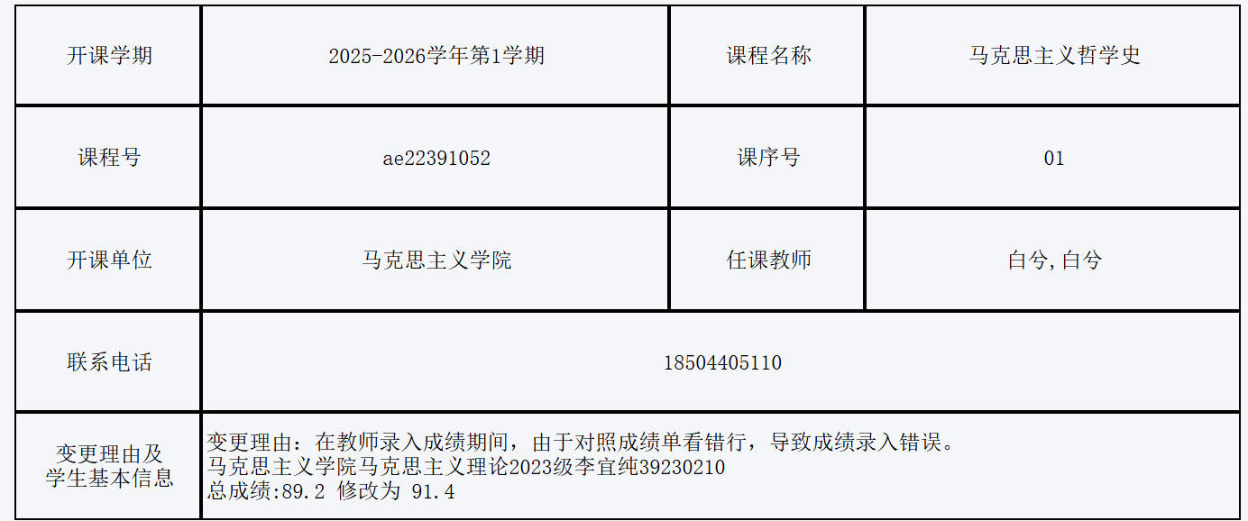 根据《关于进一步明确本科生课程考核等有关问题的通知》(校教字[2018]47号)文件有关精神,现对以下课程成绩更正进行公示: